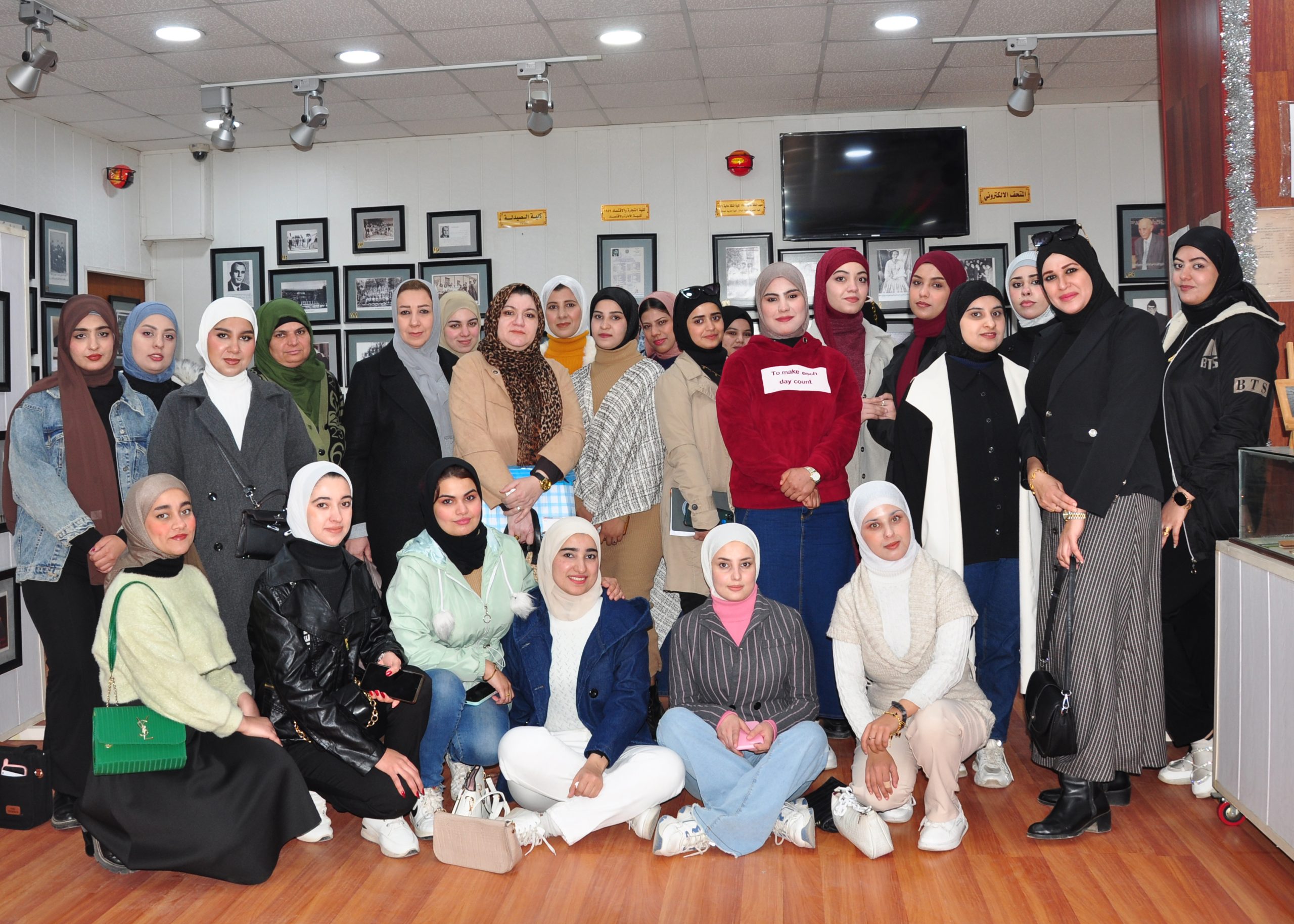 استقبل متحف جامعة بغداد مجموعة من طالبات كلية التربية للبنات في قسم التاريخ المرحلة الرابعة وبرفقتهم مجموعة من تدريسيات القسم باجواء علمية تاريخية بين اروقة متحف جامعة بغداد الذي يعد صرحا مهما ضمن تشكيلات الجامعة لما يحتويه من صور ومقتنيات تؤرشف تاريخ الجامعة الام جامعة بغداد وقد تم تعريف الطالبات على مراحل انشاء الجامعة وتاريخ تاسيس كليتهم منذ كانت معهد باسم معهد الملكة عالية للبنات. تمت هذه الزيارة يوم الاربعاء الموافق 18-12-2024 وحسب توجيهات السيد رئيس جامعة بغداد المحترم وضمن نشاطات وحدة المتحف املين ومتمنين التوفيق لكل طلبتنا الاعزاء.